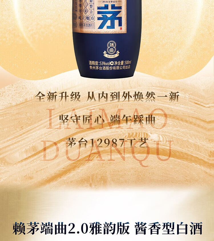 赖茅端曲2.0 酱香型白酒 53度 500ml 单瓶礼盒装