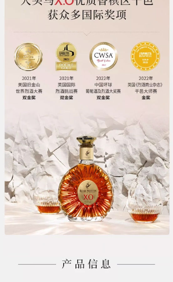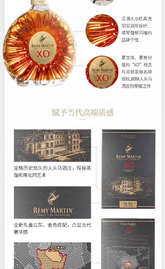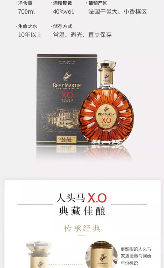 人头马(Remy Martin)XO优质香槟区干邑 700ml进口洋酒