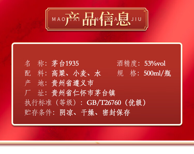茅台 1935 酱香型白酒 53度 500ml 单瓶装
