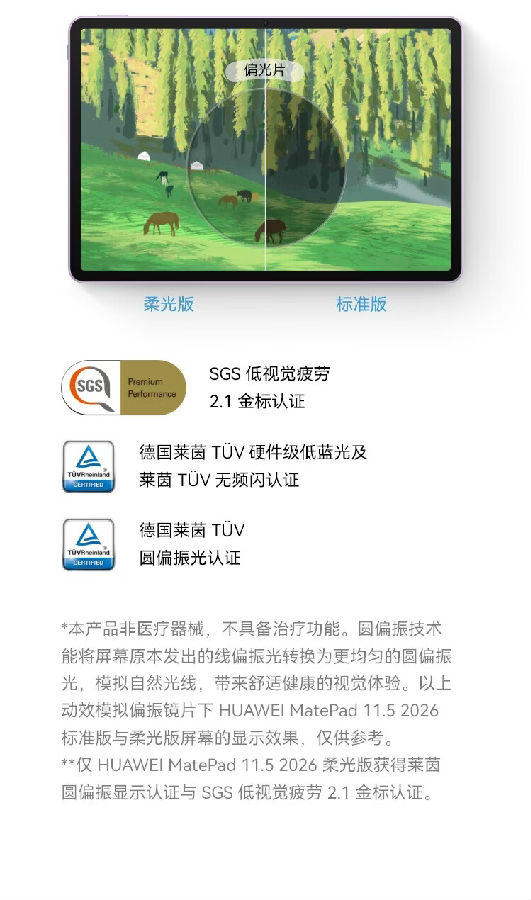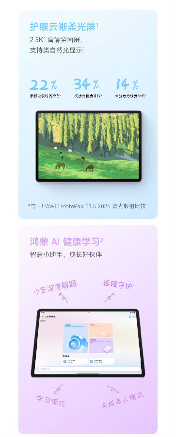 HUAWEI MatePad 11.5 2026 柔光版 华为平板电脑 护眼屏 鸿蒙AI 大电池 学生儿童学习机 12G+256G海岛蓝